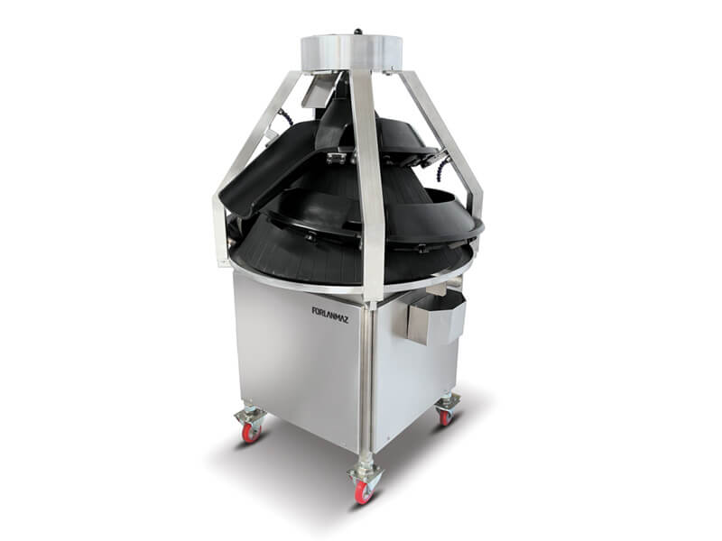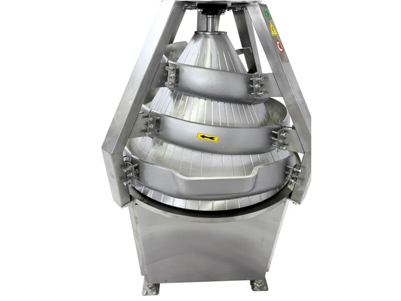 Тестоокруглитель используется для округления тестовых заготовок. Тестоокруглитель обеспечивает высокую производительность и способствует уплотнению и повышению пористости теста, что повышает качество хлебобулочных изделий. Подача воздуха в углубления машины предотвращает налипание теста на барабан. Посыпка муки происходит бесшумно. Корпус из нержавеющей стали, не подверженной коррозии. Конус и желобы из алюминия. Тестоокруглитель можно перенести посредством колес. Машина работает без шума. Экономный расход электроэнергии. Легкая чистка и обработка деталей.